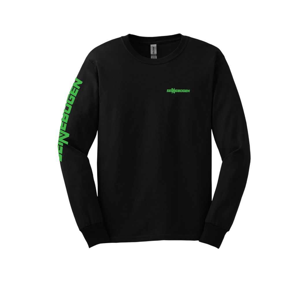 sku: SEN2400B100% US CottonLong Sleeve T-Shirt. 6-ounce. Non-topstitched, classic width, rib collar. Taped neck and shoulders. Rib knit collar and rib knit cuffs. Classic fit, seamless body. Recycled, high-performing black tear-away label.